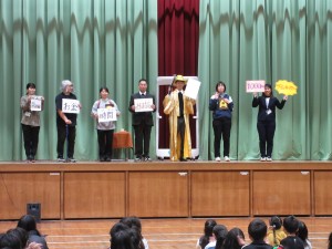 今日で2学期が終了です。今日は2学期の終業式が行われました。校長からは「2学期にみんなが成長したこと」、生徒指導担当からは「迷惑をかけない行動を!」「校区外に子どもだけで行かない」という話、そして、最後に「冬休みの過ごし方」について天神山の先生方による劇で伝えました。ゲームの仕方や生活の仕方をしっかりと考えることができたでしょうか?一人ひとりが冬休みの生活についてしっかりと考えて、楽しい冬休みを過ごしてくださいね。