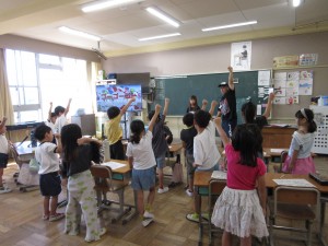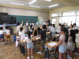 今日の天神山タイムも応援練習をしました。今日は、応援コールの練習です。応援団の声に続いて、しっかりと声を出し、練習しました。