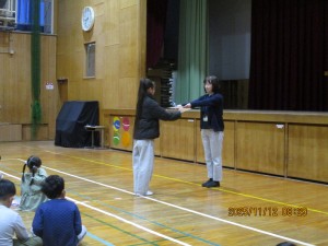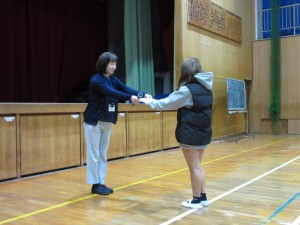今日は、表彰集会が行われました。岸和田市文化祭の作品展などに出品された人の名前が呼ばれ、代表者に表彰状が贈られました。みなさんよく頑張りましたね。