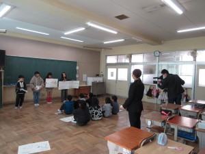 今日は、4年生が総合的な学習の時間に行っている取り組みの様子をテレビ岸和田の方が撮影に来てくださいました。ごみ問題について地域や市民の皆さんに伝えたいことをまとめ、発表する様子を撮っていただきました。放送は、3月中旬の予定です。楽しみですね!