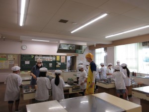 5年生になって新しい教科「家庭科」の学習をしています。今日は、はじめての調理実習で「青菜のおひたし」を作りました。一人ずつ沸いたお湯の中に青菜を入れて、ゆでた後、食べやすい大きさに切り、味付けをしました。いい感じにゆでることができましたね。是非、おうちでも作ってみてください。