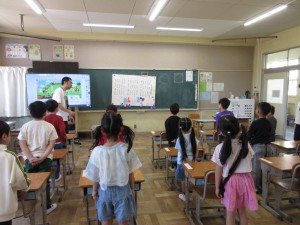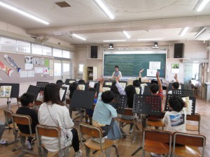 4月に入学したばかりの1年生は天神山小学校の校歌の練習を、3年生は5月にぴったりの曲「茶つみ」の歌のクイズをしているところでした。どちらも楽しそうな音楽の時間でした。